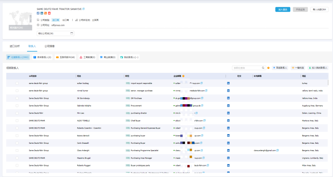 不用费时费力多渠道查找,凯发K8天生赢家一触即发外贸通集合关键决策人的职务、邮箱、领英、Facebook等信息,可直接链接领英等世界主流社交媒体平台,帮助企业快速和目标对象建立联系,助力客户开发。