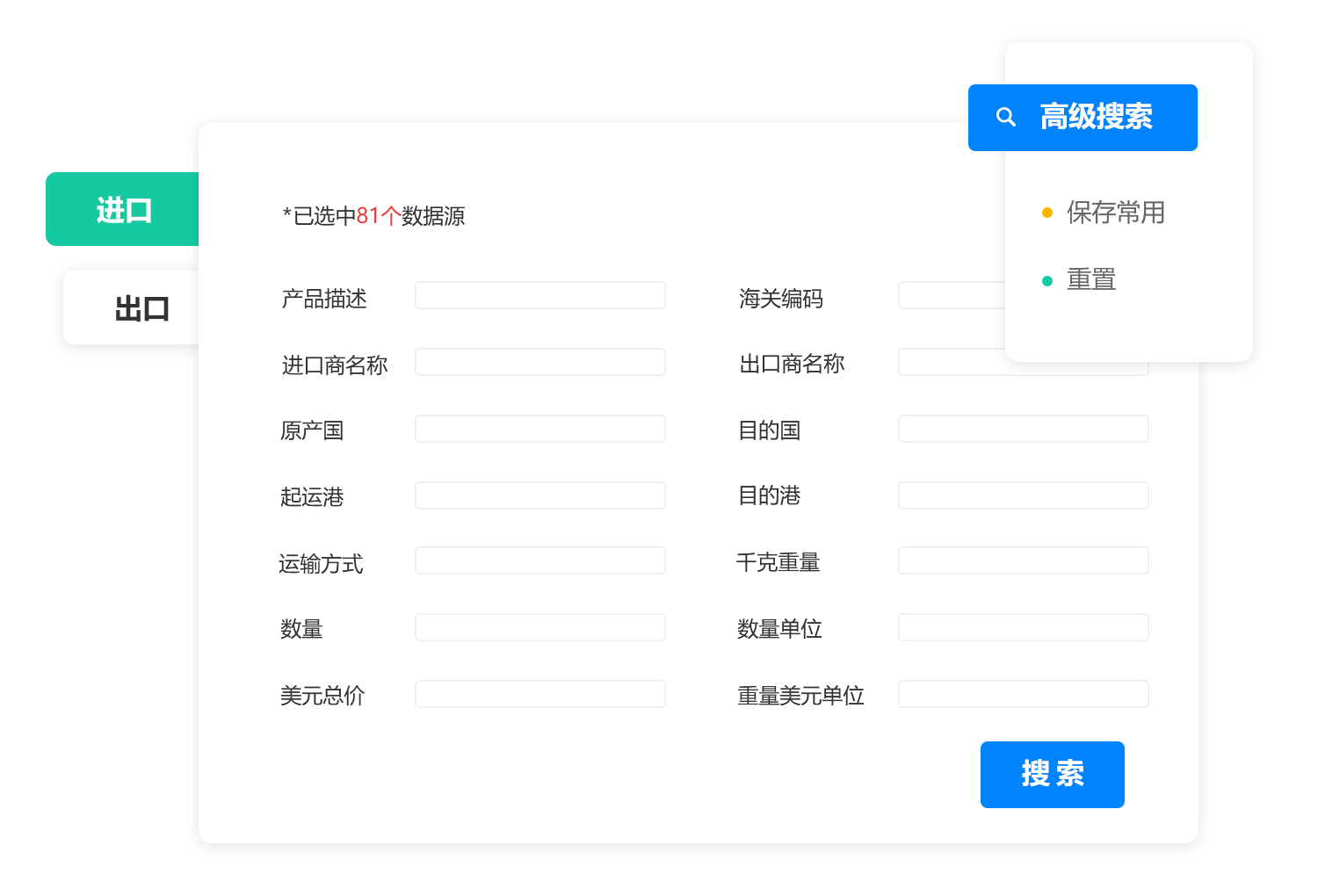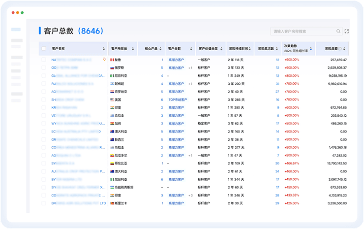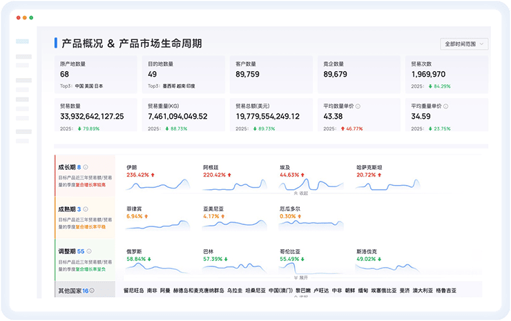 商情发现 全球潜客一键检索 全面整合贸易数据、商业数据、互联网数据三大数据资源,无需跨平台搜索,快速匹配到适合开发的客户群体。