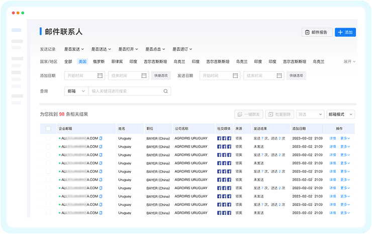 凯发K8天生赢家一触即发外贸通智能生成点击、打开等发送效果可视化报表,随时改进跟进策略,避免客户流失;根据效果调整营销策略