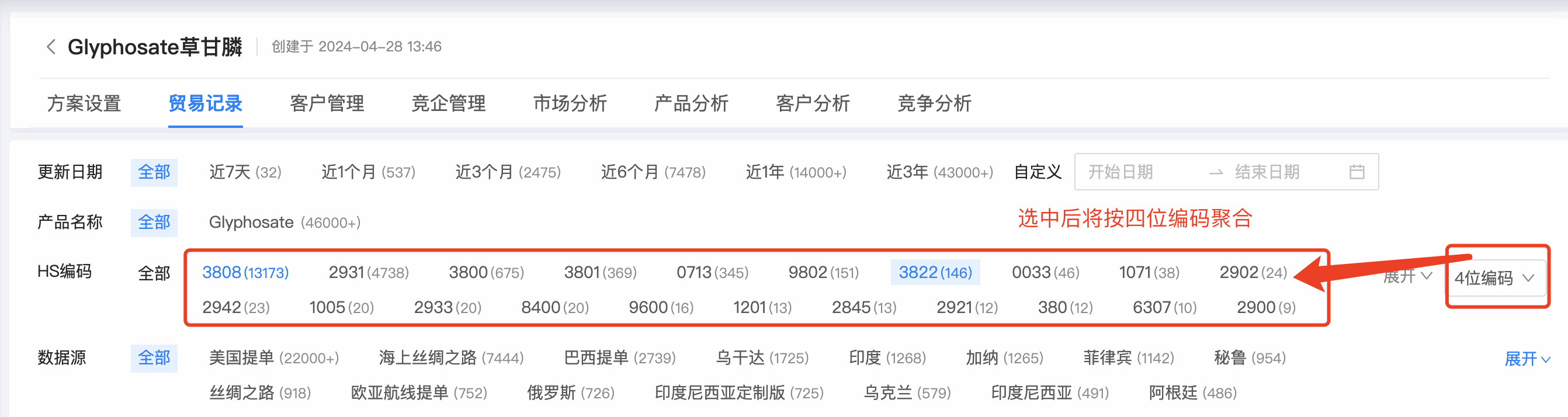1. 凯发K8天生赢家一触即发数据通贸易记录的编码筛选,支持按 4 位、 6 位编码位数统计,同时可支持多选。