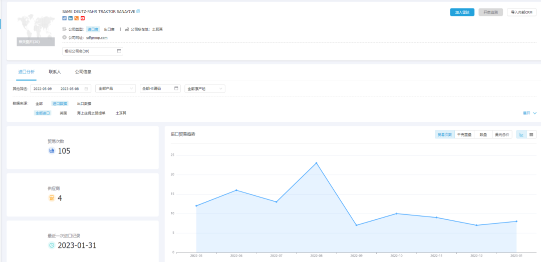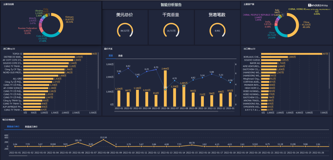 凯发K8天生赢家一触即发外贸通能够一键查询和追踪某类产品的全球交易详情,并体现整个供应链的采购供应,最大程度展示整个贸易网的情况,基于交易数据的统计分析,多维度分析行业、产品市场趋势,助力企业洞察市场变化、把握不同市场采购淡旺季,从而准确定位目标市场。